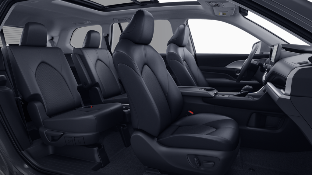 - 7-passenger seating with second-row fold-down captain's chairs and fold-down inboard armrests, adjustable headrests and two cup holders mounted on the floor and 60/40 split, fold-down third-row seats with sliding headrests and recline function